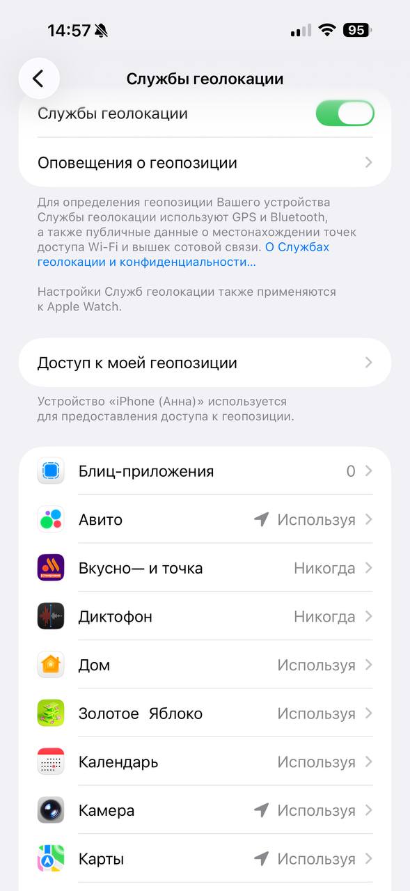 После обновления iPhone некоторые приложения могут начать активнее использовать геолокацию, даже если раньше вы этого не замечали. А это напрямую влияет на расход батареи. Поэтому полезно время от времени пересматривать доступ к местоположению и оставлять его только там, где он действительно нужен.